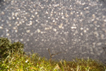 小雨ぱらつく中をみんな一斉に同じ方向に移動している。小さく光って見えるのは雨。 |